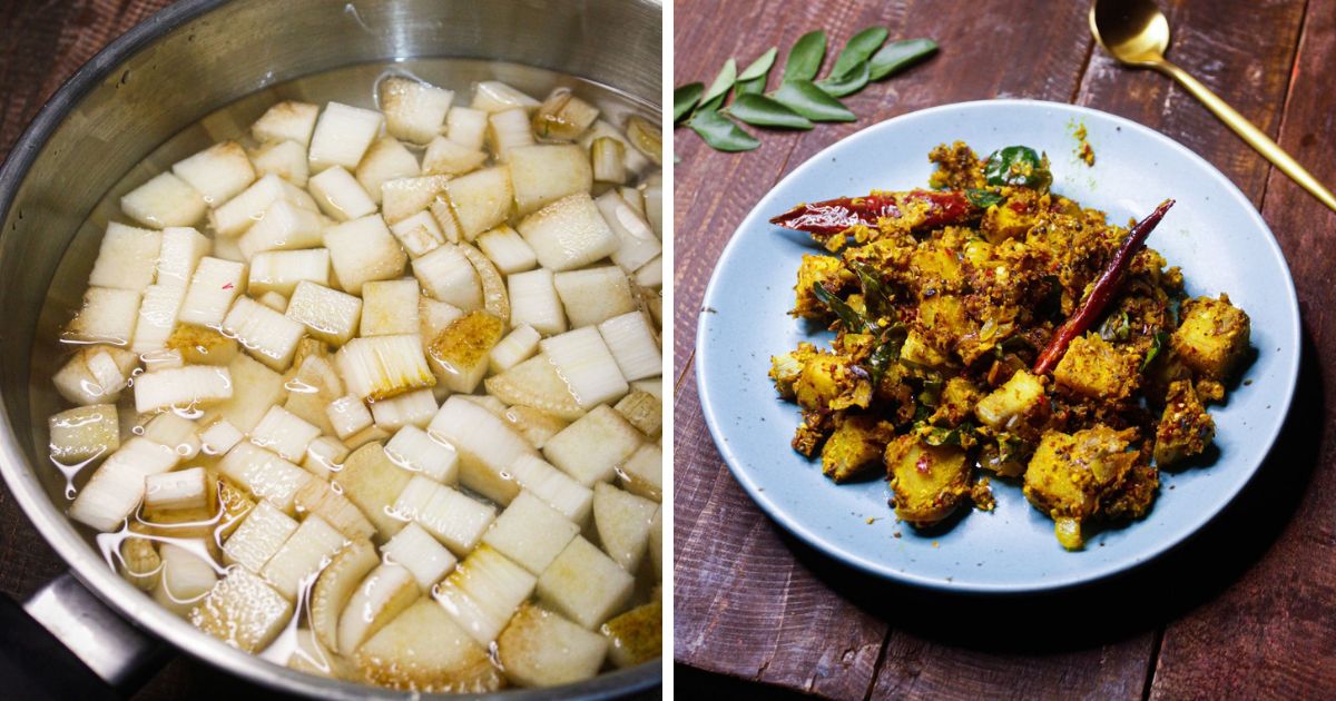 Two Ways To Make A Banana Stem Recipe Vazha Pindi Thoran Vazhaithandu Poriyal