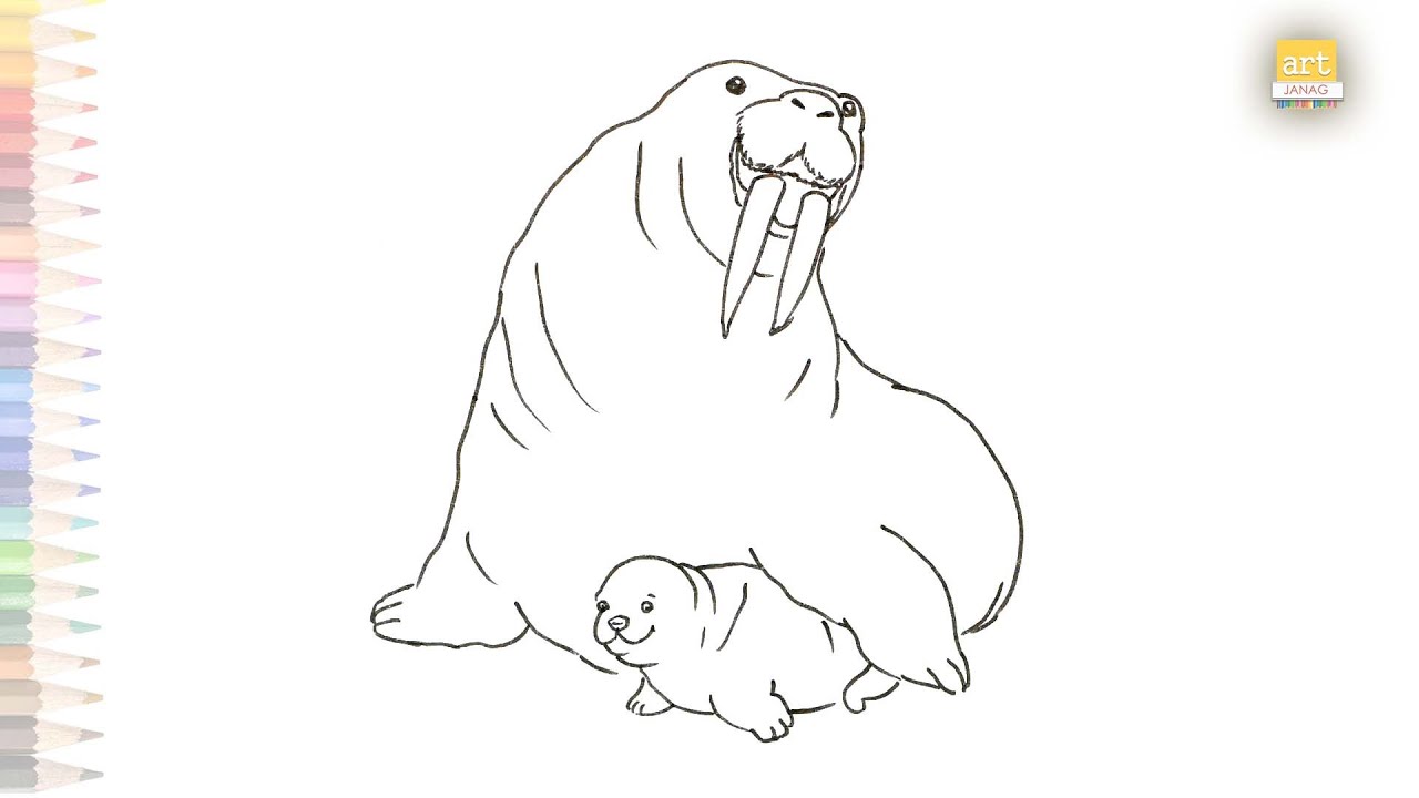 Walrus With Cute Baby Drawing Easy Dibujo De Morsa Muy Facil How To Draw A Walrus With Baby Youtube